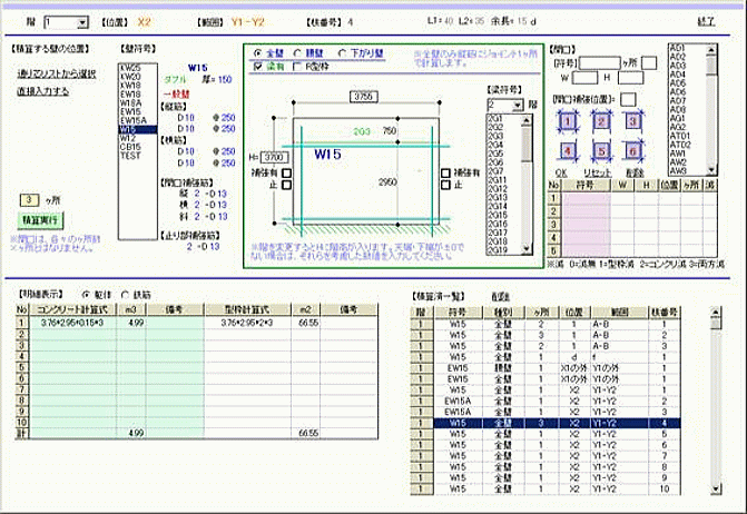 | Ver2.5 | ・シングル配筋の壁開口控除の鉄筋減数量に不具合がありましたので修正しました。 ・入力できる鉄筋径にD32・D35を追加しました。 ・リスト登録・柱積算・梁積算・スラブ積算の入力機能を強化しました。詳細はここをクリック |