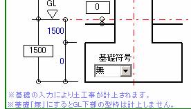 | 柱積算 | 柱入力の基礎符号に「無」を追加しました。(耐圧版基礎時の対応) 柱下部の寸法は入力してください。(図中1500部分) |