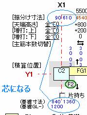 | 梁積算 | Ctrlキー併用で、基礎振分け・GL-の寸法が入力できるようにしました。また、柱の振分けを変更すると基礎の振分けは自動的に柱芯になるようにしました。 | ![]() |