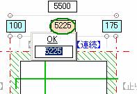 | 〃 | 柱の振分け寸法・梁天端高さ・増し打ち厚も同様に変更できます。 Ctrlキーを押しながら寸法をクリックするとフォームが出ますので入力後Enterキーを押すかOKをクリックします。 |