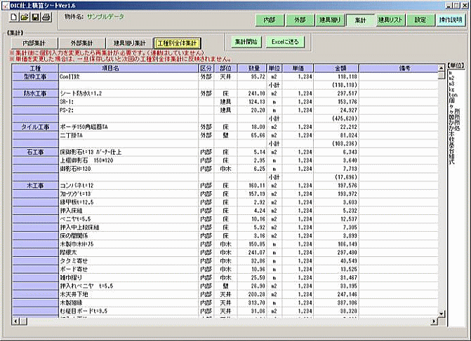 | Ver1.3 | ・工種別集計表のデータをExcelに送れるようになりました。 |