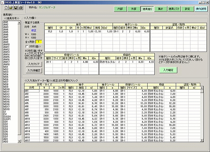 | Ver3.3 | ・内部仕上のヶ所を変更直後に外部仕上の場所追加をすると、内部仕上のヶ所数が「1」になる件を修正しました。 |