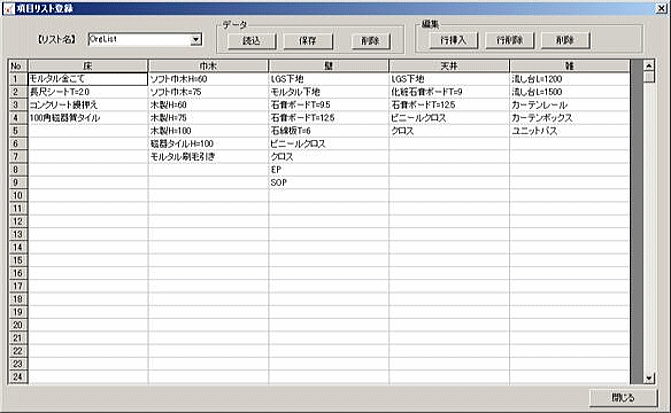 | Ver3.5 | ・項目名と適用の区切りに:を入れておくと工種別集計をExcelに送った際に分けて貼り付けられるようにしました。 例)御影石t=35:バーナー仕上 として入力しておけば、Excel上では御影石t=35とバーナー仕上に分けられます。 |