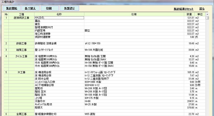 | Ver1.05 | 1.工種別集計で、空欄状態で外部送り実行すると強制終了していたものを修正しました。 2.床の項目別選択後、項目変更できない件を修正しました。 3.積算項目の「修正登録」実行時に確認メッセージを入れるようにしました。 |